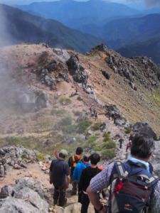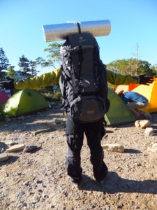 テントを片付けていざ出発、人生初の登山でこれだけ担ぐのはすごいですね。。。