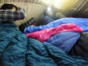 ほとんどのメンバーが初テント泊、ギチギチでしたが、こういうのも悪くないです。