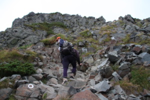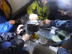 装備を軽くして独標を目指します。目標達成後はテントで夜ご飯です。