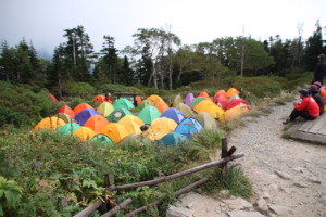 幕営場でテントを張ります。既に多くの方がテントを張っていてました。
