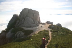 駒石経由で下り始めると、7時過ぎからガスが上がり始め、あっという間に真っ白に……。